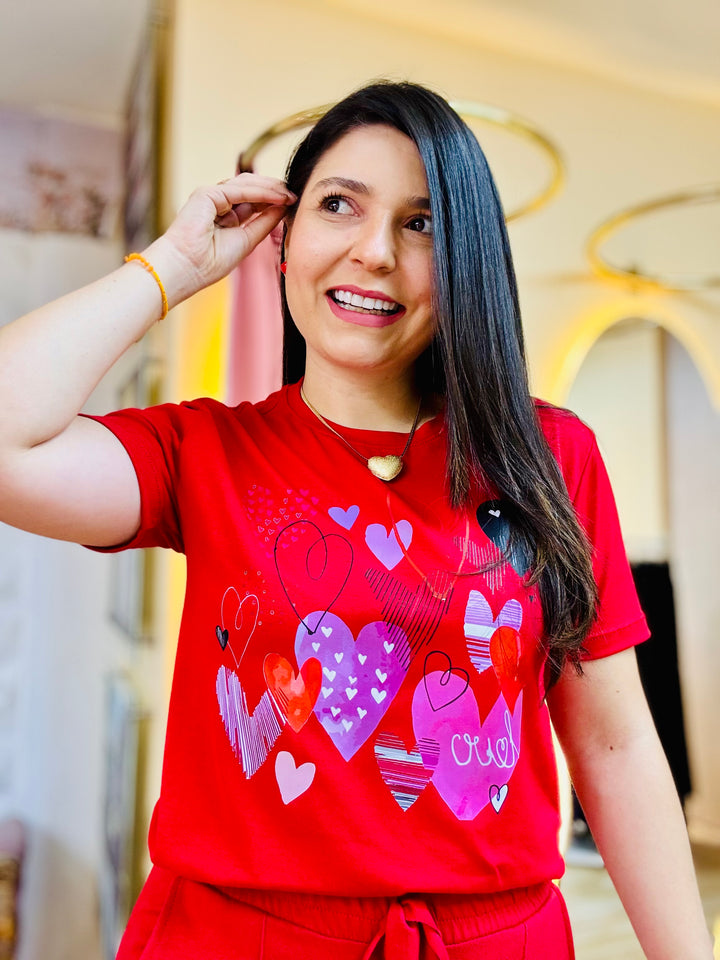 Camiseta corazones rojo