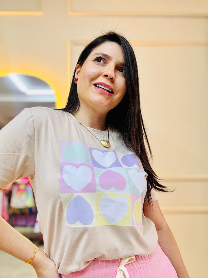 Camiseta corazones pasteles