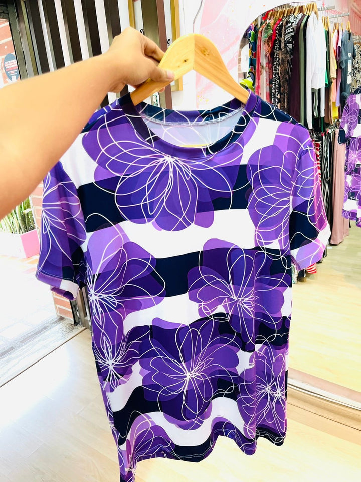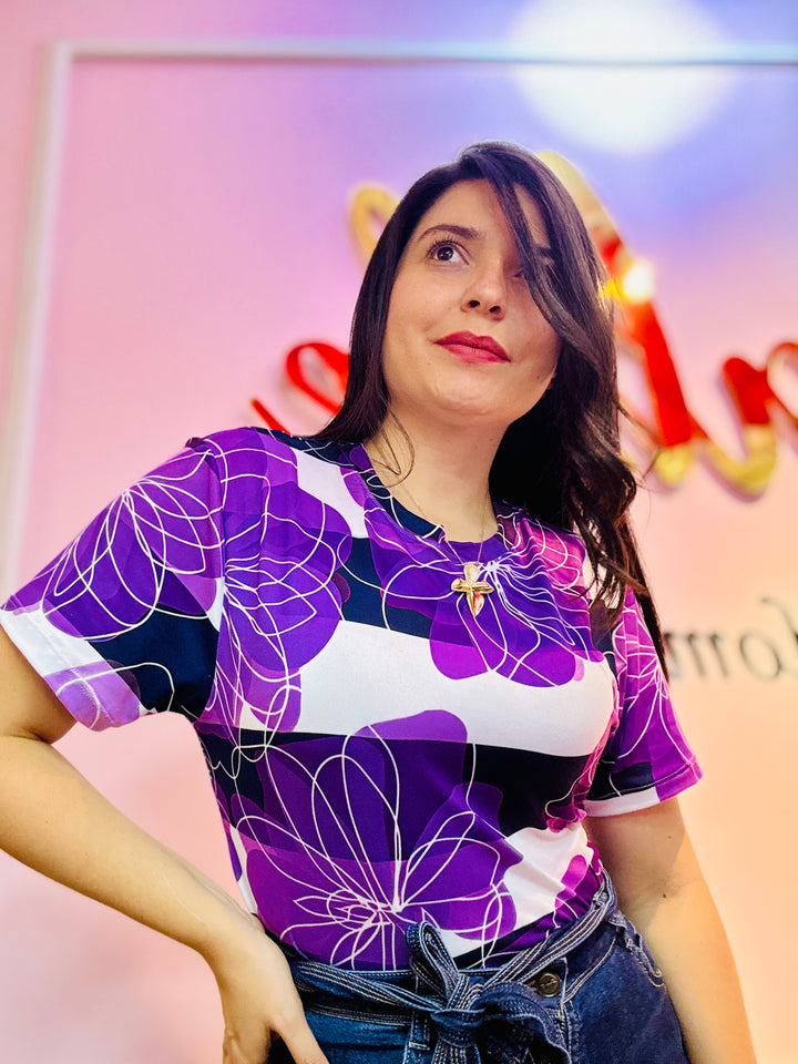CAMISETA RAYAS FLORES MORADAS